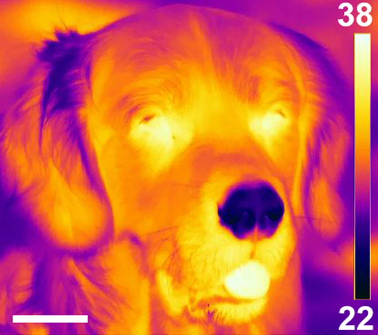 隆德大学的研究人员进行了一项行为研究,向三只狗展示了两个物体,一个中性物体的温度大约为环境温度,一个具有毛茸茸哺乳动物的表面温度。通过训练,这些狗狗便能够根据辐射热在1.6米(5.2英尺)的距离内区分两个物体。