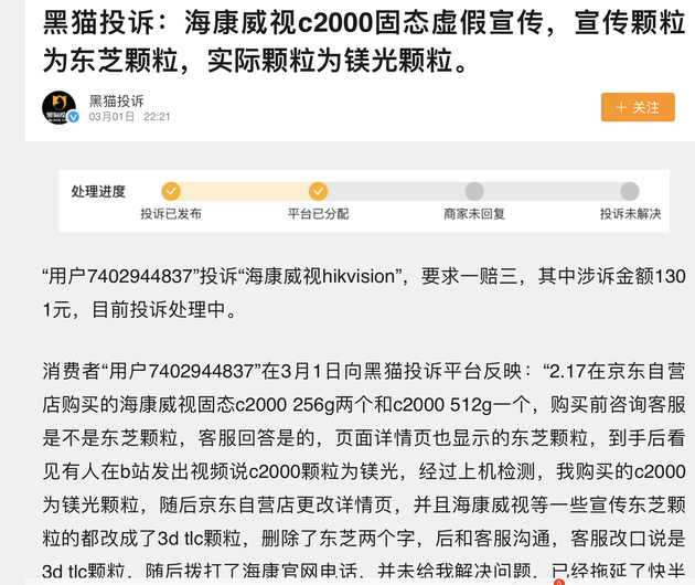 此前海康威视C2000 Pro还因为“换芯”引来争议,海康威视发布了广告,表示自家的主力产品C2000 Pro产品线做了更新,从颗粒到主控芯片变化都非常大,但新的方案却被网上一些人解读为降级。