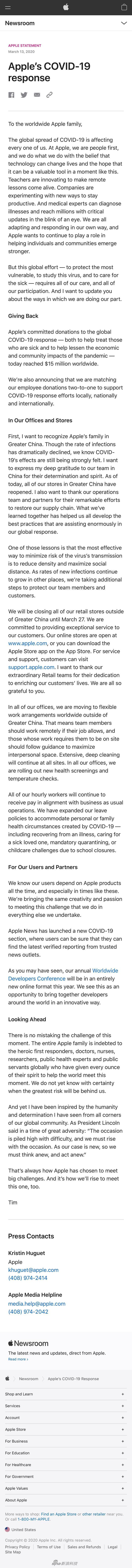 3月14日下午消息,因为新冠病毒,苹果公司宣布,将在3月27日钱,暂时关闭大中华区以外所有Apple Store零售店。苹果官网今天刊登出库克的公开信,主要是谈论新冠病毒及苹果的相应措施。在信中,库克提到:因为病毒缘故,将在3月27日之前,暂时关闭大中华区以外的所有零售店。