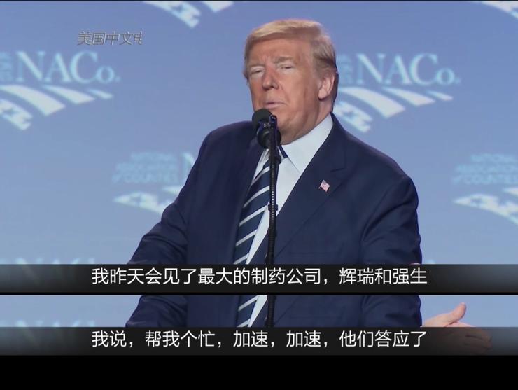 据美国中文网报道,当地时间 2020 年 3 月 3 日,Donald Trump 在全美郡县协会立法大会(National Association of Counties Legisisation Conference)上表示,他曾要求制药公司加快研发新冠病毒疫苗: