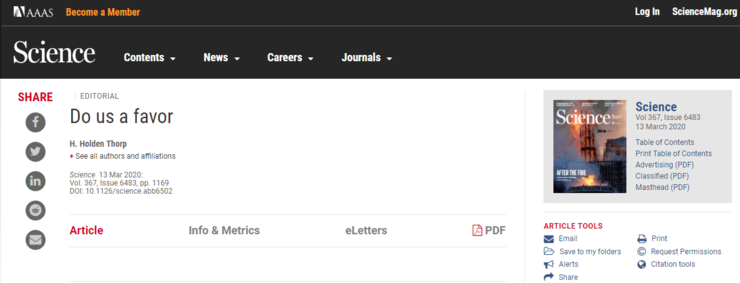 科研经费大幅削减,还被一向对疫苗持质疑态度的总统催着研制疫苗,美国科研人员太难了。当地时间 2020 年 3 月 13 日,顶级期刊《科学》杂志(Science)主编 H. Holden Thorp 发表社论文章,就美国总统 Donald Trump 要求尽快研制出疫苗一事,希望 Donald Trump 尊重科学及其法则。