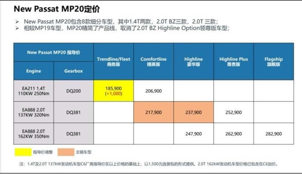 2020款帕萨特疑似售价
