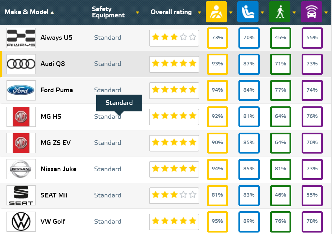 总的来看,E-NCAP虽然没有推出难度更大的主副驾小偏置碰撞,但对于车辆的AEB及其它安全辅助系统的要求,较IIHS难度系数更大。对于欧洲众多车企来讲,如果车型在安全架构方面不大幅升级,那么拿五星就更难了。