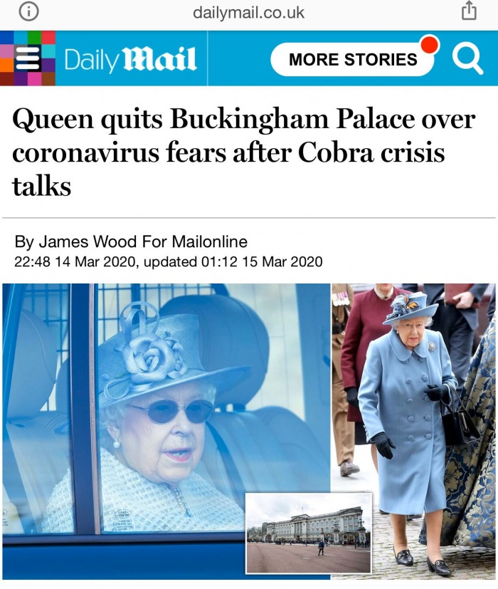 英国《每日邮报》15日最新消息,因担心感染新冠病毒,英国女王已离开白金汉宫前往温莎城堡。报道还称,如果新冠肺炎疫情进一步扩散,她将与丈夫菲利普亲王在桑德林汉姆庄园进行自我隔离。
