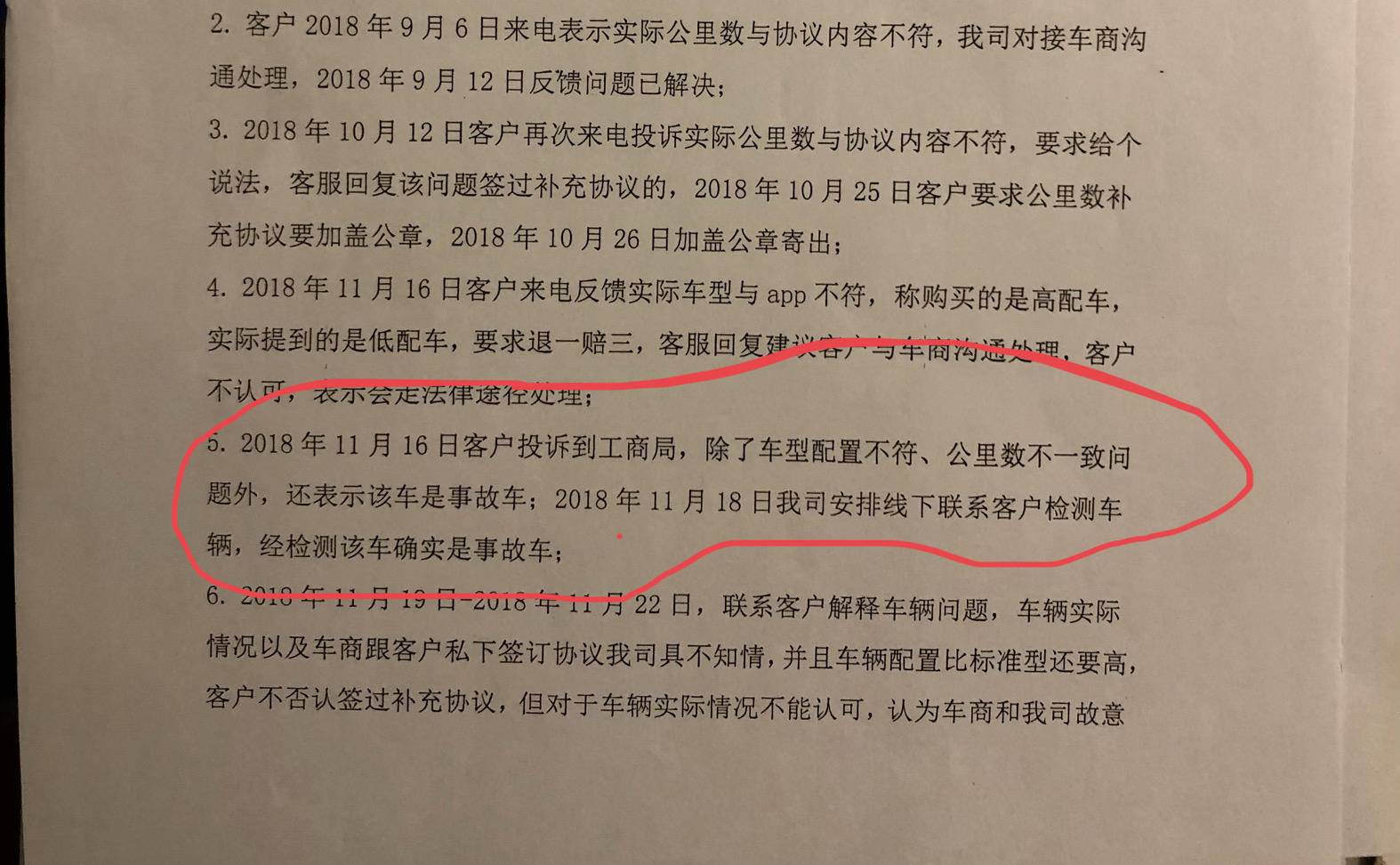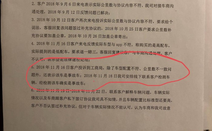 2018年10月,梁犇将车送去保养,结果发现两个问题:其一这款车并不是高配置,而是标准配置;其二是这辆车是事故车。“我当时买的是高配版,并且也没人告知我是事故车。”梁犇说,车副梁被换过,左后车尾也有被焊接的痕迹。