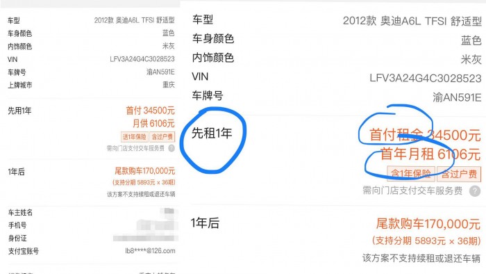低首付的吸引力,加上对阿里巴巴的信任,梁犇最终选择了弹个车。2018年8月30日,他经过多番选择后敲定购买一辆2012款奥迪A6L舒适型轿车。