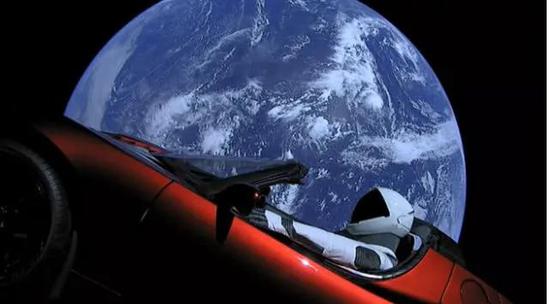 2018年2月,马斯克用“重型猎鹰”把一辆特斯拉Roadster跑车发射进太空,奔向火星轨道。