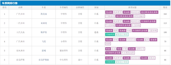 据了解,截止目前,在国内汽车投诉网站车质网上,近1个月的投诉排行榜中,一汽丰田、广汽丰田及雷克萨斯相关车型在10个上榜的品牌里占据了4个。