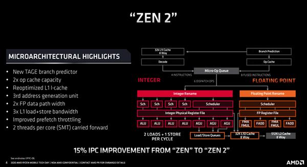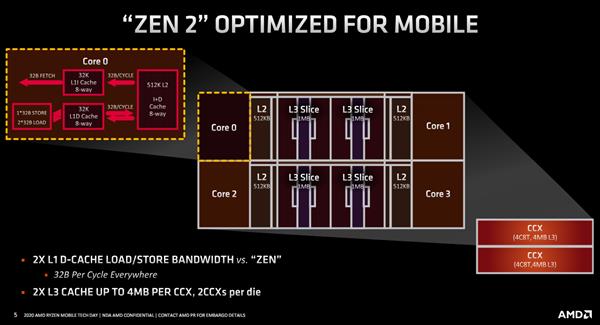 总之,在锐龙4000笔记本处理器上,AMD实际上是把7nm Zen2核心重构了一遍,跟其他产品的架构有所不同,目的就是满足笔记本市场特殊的需求。