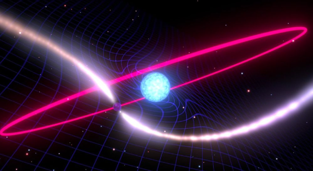北京时间3月17日消息,据国外媒体报道,一项新研究发现,时空围绕一颗死去恒星旋转的方式证实了爱因斯坦广义相对论的又一项预测。爱因斯坦曾预言过一种名叫“参考系拖曳”的现象,又名冷泽-提尔苓效应,认为时空会围绕一个不断旋转的大质量物体转动。就好像把地球浸到蜂蜜中,随着地球自转、周围的蜂蜜也会被带着旋转一样。