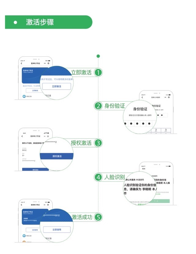 以“腾讯健康”小程序为例,参保人只需打开微信-“我”-“支付”-“医疗健康”,点击国家医保电子凭证“立即激活”,根据指引完成身份验证并“授权激活”即可。