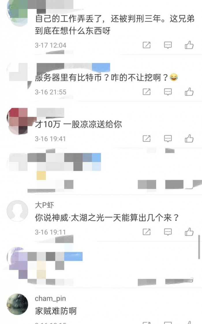 网友也评论称:“为了 10 万,三年牢狱之灾,终生职业生涯被毁,实在不值得”。