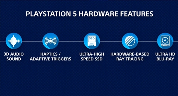 目前,PS5公布的官方信息有限,仅仅有8核AMD Zen 2处理器、基于Navi的GPU、支持8K输出、3D音效、4K 120Hz游戏、低功耗、超快SSD硬盘等。