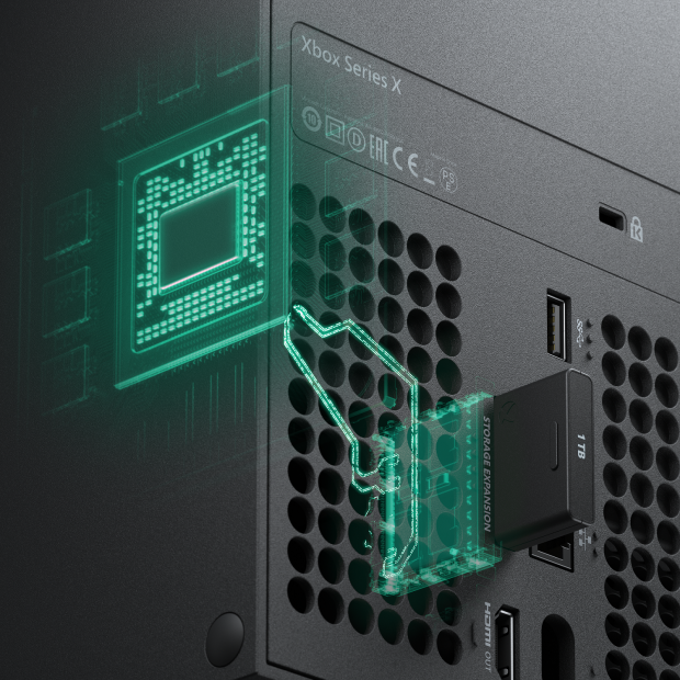 内存卡回归,而且它们比之前更好(更贵)了。Xbox Series X将支持特别定制的内存卡以扩展主机内置的1TB SSD。当然XSX也支持外接HDD(传统机械硬盘),但HDD提供的功能有限,而且只能游玩老游戏。