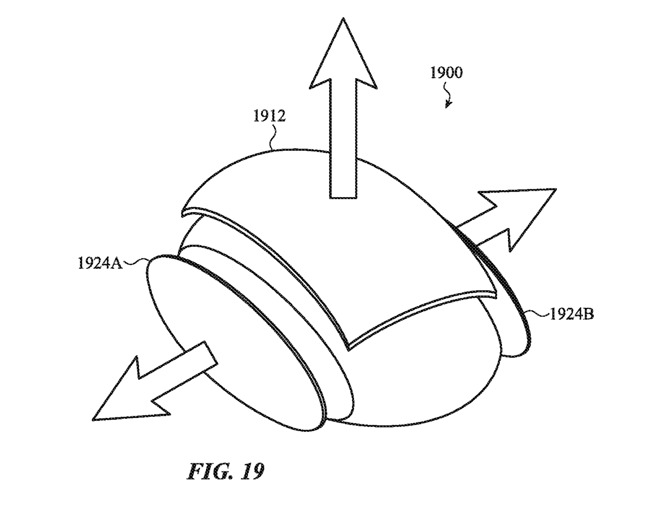 为了确保结构的完整性,外壳可以由重叠的部分组成,从而消除了可能的缝隙,这些缝隙在压紧时可能会夹住手指或削弱整体结构。尽管这种连接方式可以垂直应用,但苹果公司还暗示了鼠标变宽的可能性。侧面的滑出部分再次由执行器控制,可以弹出到各种位置以适应更大的抓地力。而这些弹出式元件仍可以包含在整个外壳中,这意味着鼠标可以保持光滑的外观而没有间隙或孔,同时仍然能够更改其尺寸。
