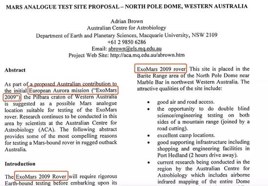 2004年3月欧洲地外生命研讨会中关于ExoMars 2009的火星车在澳大利亚测试的建议。 来源:[3]