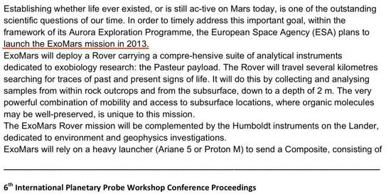 2006年5月,欧空局文档中对ExoMars的介绍,表示2011年要发。 来源:ESA Bulletin 126 [5]