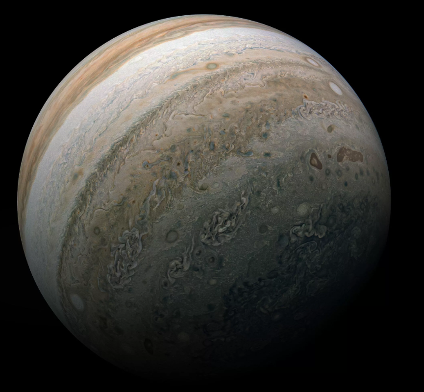据外媒CNET报道,在地球上艰难的时刻,美国宇航局(NASA)的机器人探测器仍在探索太阳系并发回有关宇宙之美的提醒,这可能是一种安慰。NASA近日发布了一张全新的木星图像。该合成图像使用了来自NASA的朱诺号探测器所拍摄的四张图像。这些图像是该航天器在2月飞掠木星时所拍摄的。公民科学家凯文·吉尔(Kevin Gill)对图像进行处理,以创建最终杰作。