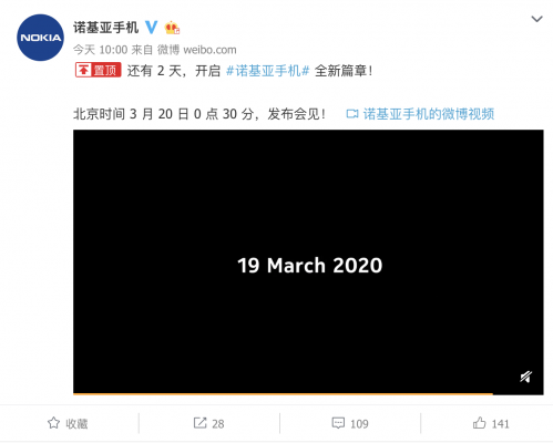 就在刚刚,诺基亚官方微博正式宣布,诺基亚新品发布会将于北京时间3月20日凌晨0点30分在英国伦敦正式召开。官微预热称:“还有2天,开启诺基亚手机全新篇章!北京时间3月20日0点30分,发布会见!”。 根据之前的预测,诺基亚很可能在此次发布会上正式推出旗下首款5G手机,同时,按照诺基亚近年来发布会的新品登场节奏,包括功能机在内的多款全新机型也有望同期露面。
