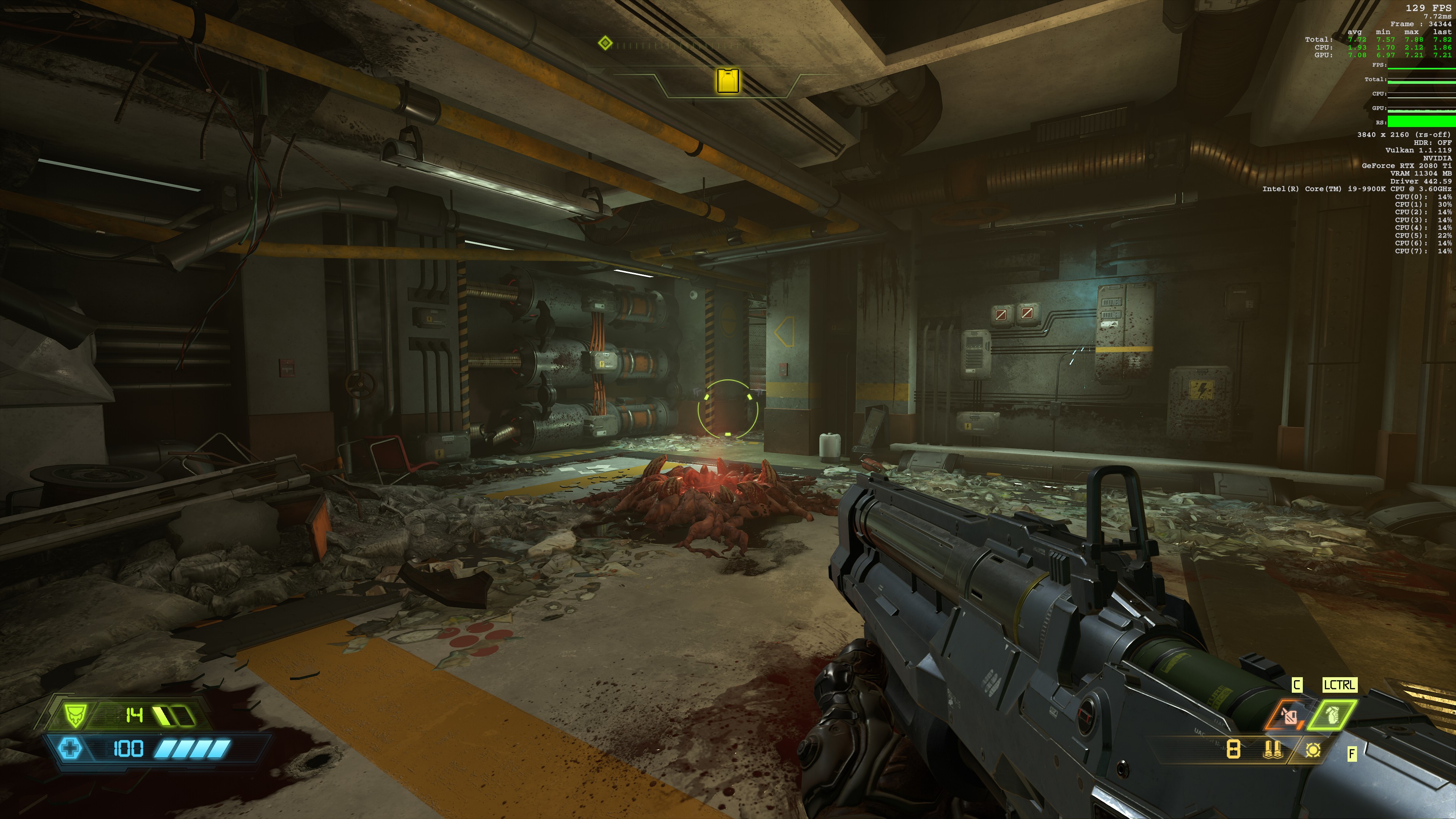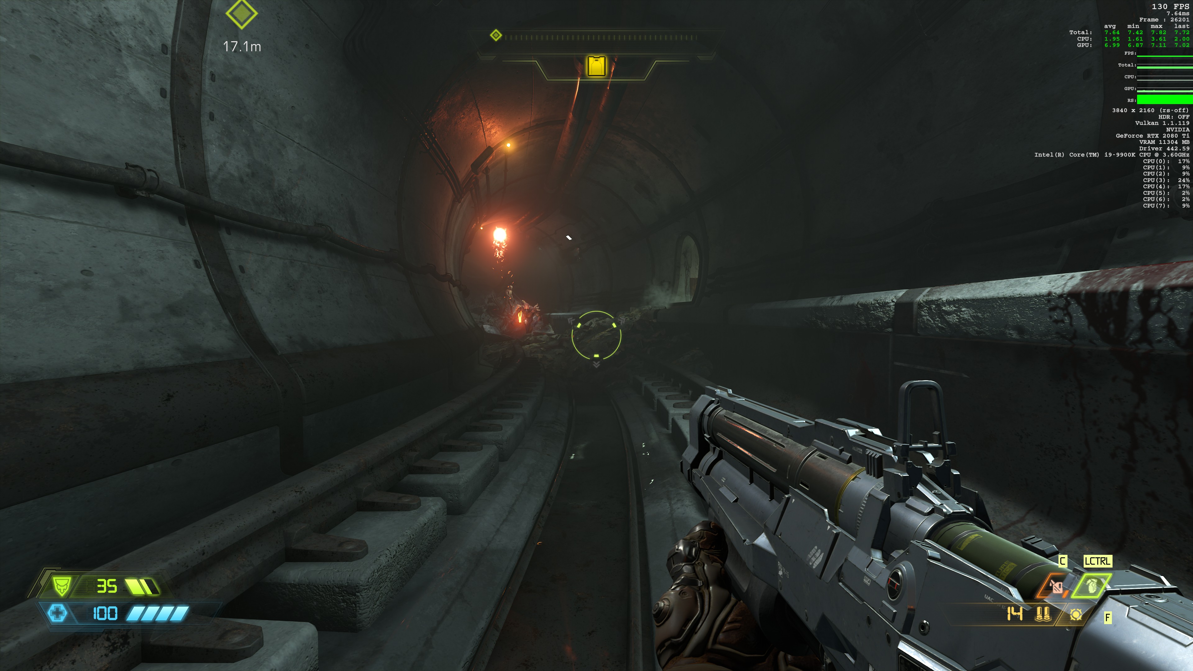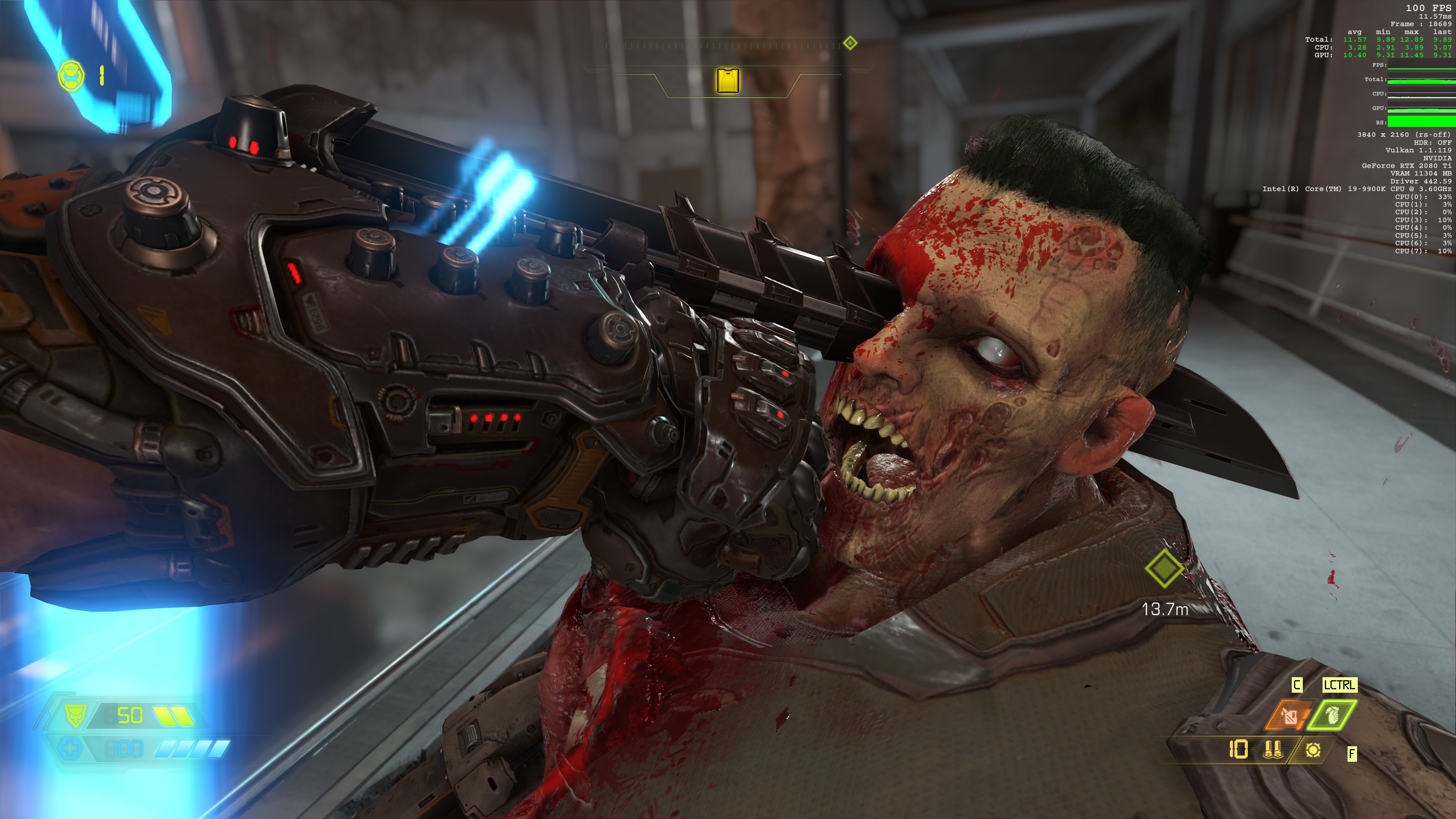 《毁灭战士:永恒》PC版采用D加密技术,但运行非常流畅。单人战役能离线游玩。PC玩家无需连接网络,即可尽情享受该作的史诗级战役。dsogaming表示RTX2080Ti显卡在4K/究极噩梦设定下,能以最低71fps,平均83fps运行游戏,在某些区域运行速度更快。