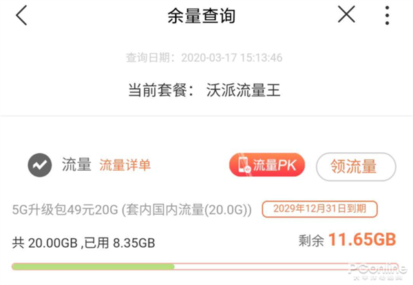 等于说,你无论如何都要先花掉这“20GB的最高500Mbps速率”的升级包,然后才能用回原来沃派卡里面海量实惠的4G流量套餐(偶尔还能用用300Mbps的“伪5G”)。