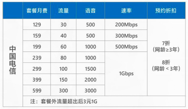 与中国联通一样,中国电信的套餐外流量在超出后为3元1G。
