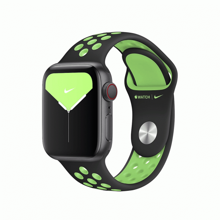 ▎Apple Watch Nike 运动表带:新增黑配闪亮绿色、暗宝蓝配极光绿色