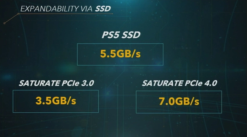 硬盘部分,PS5也上了PCIe 4.0硬盘了,性能可达5.5GB/s,压缩数据可达8-9GB/s,要比2.4GB/s的XSX主机强。