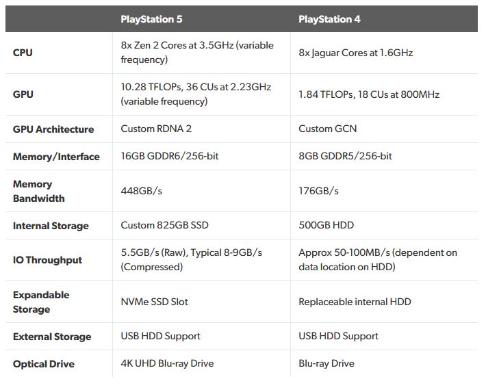 Eurogamer做了个汇总,来简单比较下PS4、PS5与XSX的规格吧。