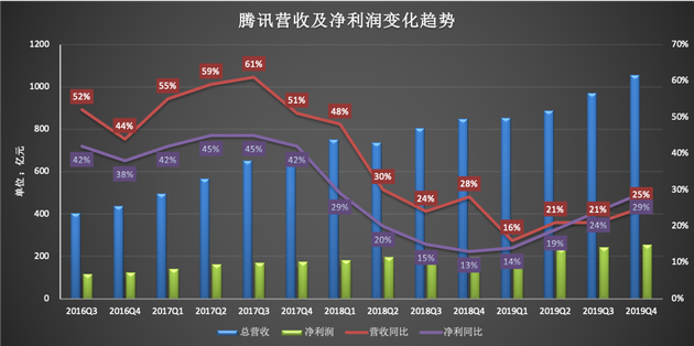 疫情之下,腾讯交出了一份回血“复活”的成绩单。3月18日下午,腾讯发布2019年第四季度及全年业绩,其第四季度总收入为人民币1057.67亿元,相比去年同期增长25%,公司权益持有人应占盈利为人民币254.84亿元,同比增长29%。