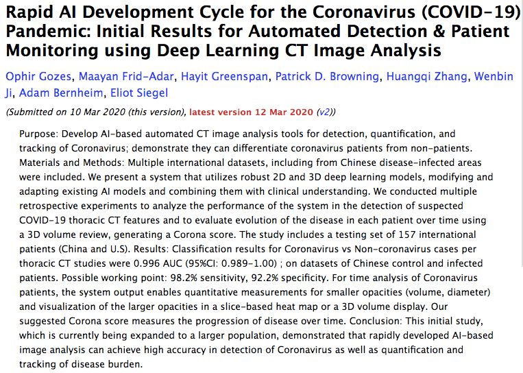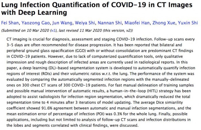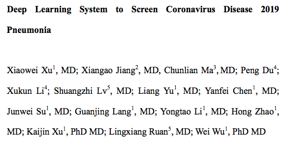 论文题目:深度学习系统筛查2019新冠肺炎
