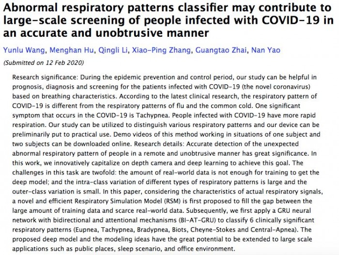 论文题目:异常的呼吸模式分类器可能有助于以准确无阻碍的方式大规模筛查COVID-19感染者