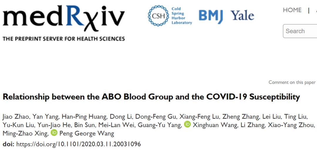该研究论文《Relationship between the ABO Blood Group and the COVID-19 Susceptibility》于当地时间3月17日刊发在预印本平台medRxiv,尚未经同行评议。