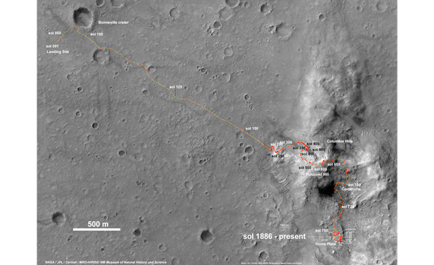 在2009年5月1日被困在沙里之前,勇气号火星车已经运行了7.7公里,之后它在原地又工作了一年