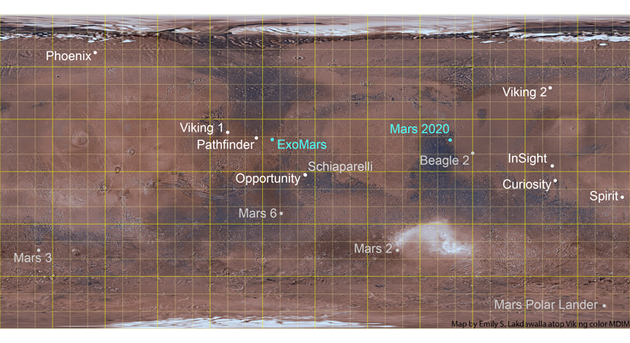 到目前为止,大多数火星任务都是着陆器,目标定在某个特定地点。大多数任务(包括苏联的每一次尝试)都以失败告终。不过,美国国家航空航天局的5台火星车都成功登陆并运行,尽管目前只有“好奇号”和“洞察号”仍在执行任务。2020年夏天,我们可能会见证三台不同的火星探测车发射,它们分别是NASA的“火星2020”探测车、欧洲空间局的“罗莎琳德·富兰克林”(Rosalind Franklin,DNA双螺旋结构的发现者之一)火星车和中国的“火星一号”探测车。