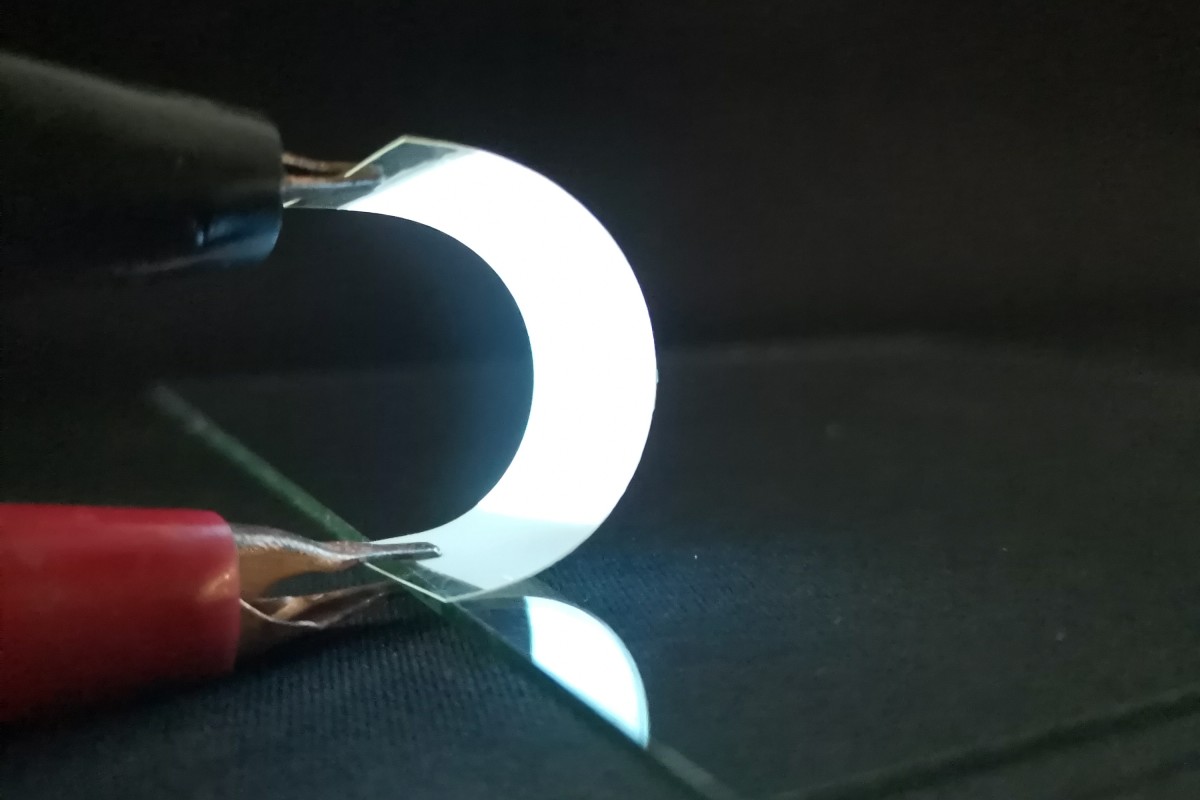 据悉,团队用这种薄膜构建了一个交流电电致发光设备,其可以在弯曲和放松1000次以后仍能继续发光。