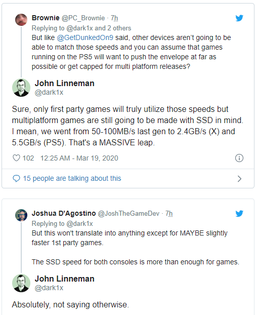 这意味着PS5游戏将有最快的载入时间,但外媒DF记者John Linneman指出PS5的超快SSD,只有索尼第一方游戏才能真正利用,因为多平台游戏仍将继续迎合Xbox Series X和PC上的最低值。