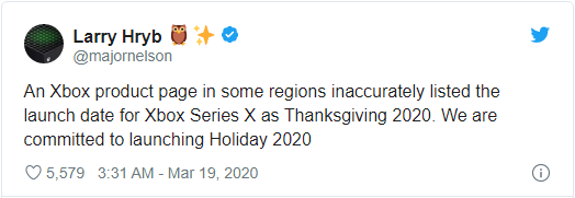 早些时候,微软似乎“意外地宣布了 Xbox Series X 次世代游戏主机将于感恩节期间上市”。不过 Larry Hryb(又名 Major Nelson)在 Twitter 上辟谣称 ——“某些地区的产品页面上错误地列出了 Xbox Series X 的上市时间”—— 因为该公司仍致力于在 2020 年底假期时推出这款游戏主机。