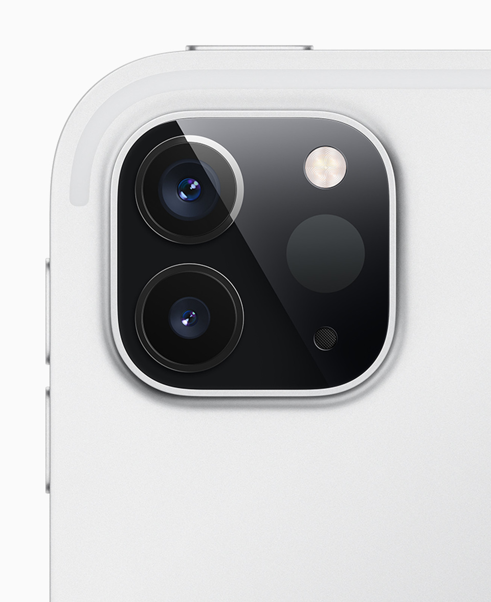 新款 iPad Pro 搭载了 1200 万像素广角摄像头 + 1000 万像素超广角摄像头的双摄组合,两者的光圈分别为 ƒ/1.8 和 ƒ/2.4。此外,原彩闪光灯也得到了升级,能够实现亮度更高的补光。