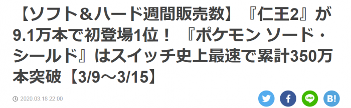 根据FAMI通发布的最新周销榜统计,《宝可梦:剑/盾》销量突破350万,这也创造了所有NS系游戏中最快达成该销量的纪录,之前的记录为《任天堂明星大乱斗特别版》,花了1年1个月才达成。