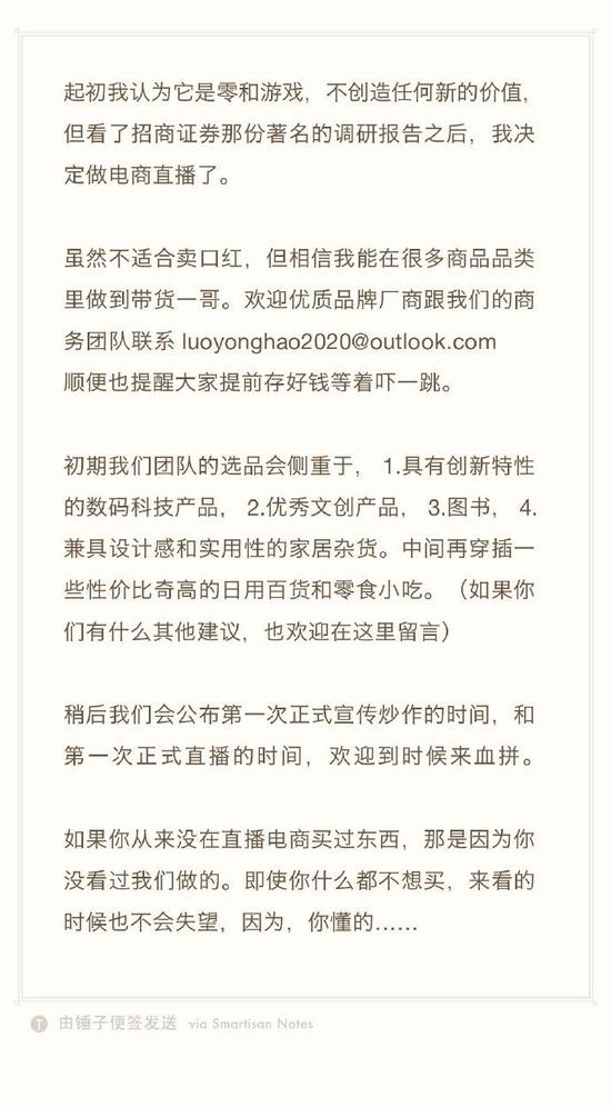 3月19日,罗永浩在他个人微博上宣布,将正式入局电商直播。他在声明中表示,“虽然我不适合卖口红,但相信能在很多品类里成为带货一哥。”