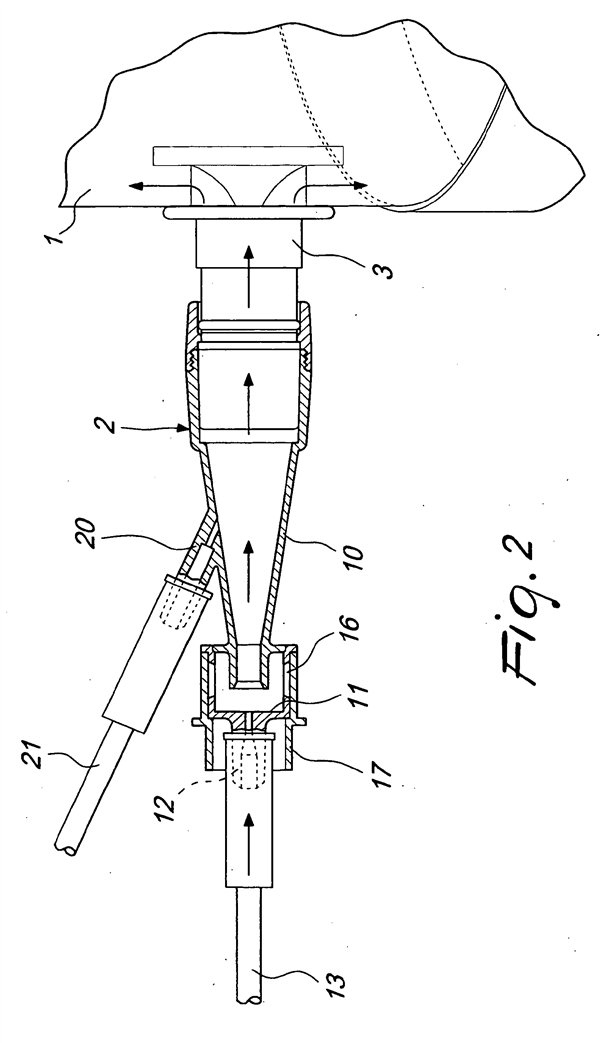 专利注册在欧洲专利局下,是一种“呼吸治疗用氧气,或空气加氧气的装置”,阀门需要和呼吸头盔一起使用,用于患者的无创通气。专业名词叫做用于文丘里(Venturi)氧气面罩的文丘里阀。[7]