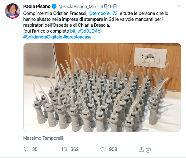 [5]意大利技术创新部长, https://twitter.com/PaolaPisano_Min/status/1239246094539915265