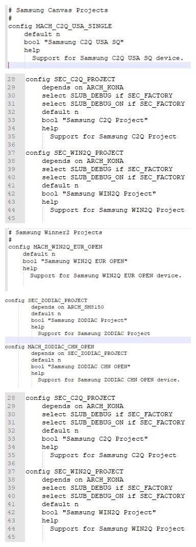 在源代码中还找到了代号为kona的骁龙865,意味着Galaxy Fold 2、Galaxy Note 20将会采用骁龙865旗舰平台。