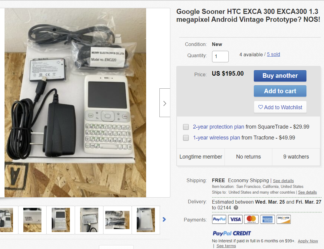 一般而言,HTC G1被视为历史上第一款Android手机,但实际上并非如此。在HTC G1诞生之前,谷歌就曾推出了搭载Android系统的全键盘手机——代号Sooner。这款原型机近日突然出现在了eBay上,并且以195美元(约合人民币1400元)的价格大量开卖。