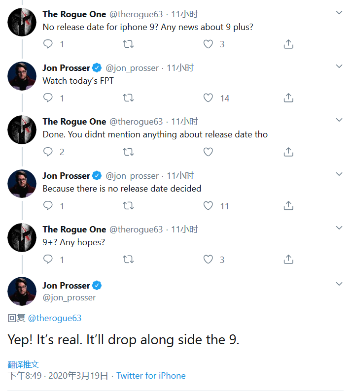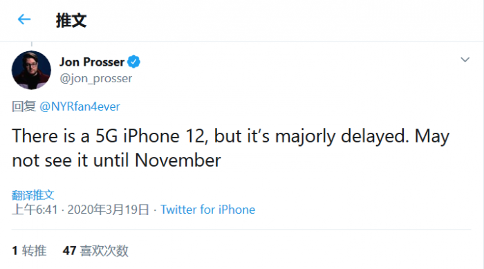 这可能意味着距离iPhone 9正式发布只有几周时间了,苹果有信心建立足够的供应量来满足市场需求。不过坏消息是普罗瑟表示支持5G网络的iPhone 12要推迟了,可能要到11月才会上市。