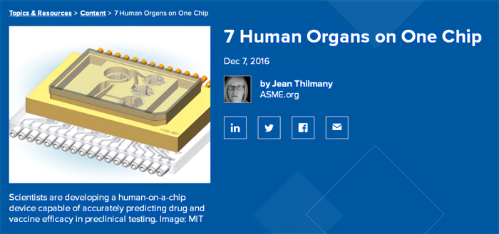 (图:2016年关于这种芯片上的微型人体器官的报道。图源:MIT)