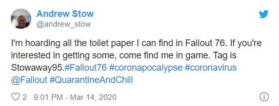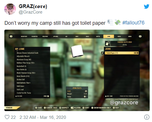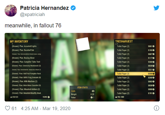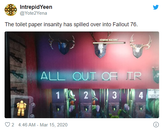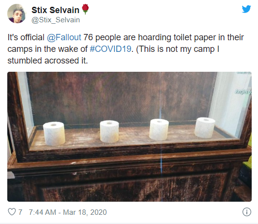 “不是开玩笑,《辐射76》的玩家真的在为对抗新冠病毒囤积厕纸”