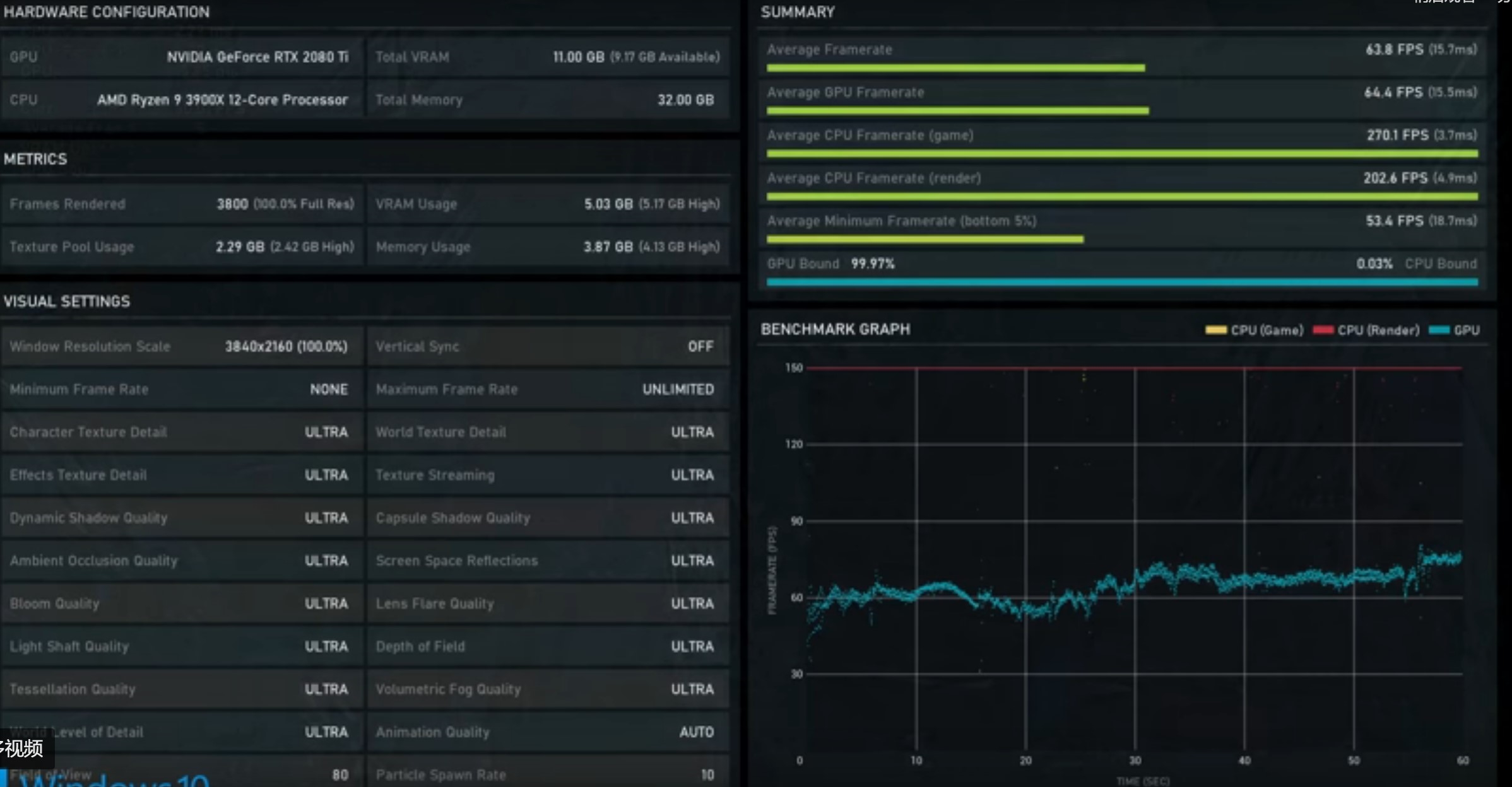 资深游戏媒体Digital Foundry基于这段12分钟的Demo,详细对比了Xbox One X和一台运行锐龙9 3900X+RTX 2080 Ti的PC。从PC平台的Benchmark基准成绩来看,4K全高特效,平均63FPS,和Xbox Series X处在同一水准,甚至XSX在局部光照、积云等效果上,比PC还好好些。