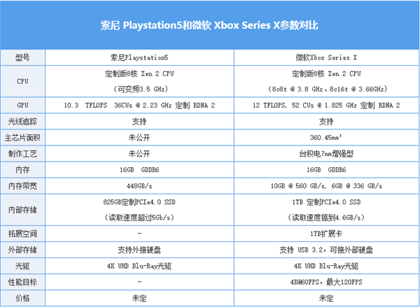 从已知信息来看,除了在硬盘性能上领先竞争对手外,PS5在CPU和GPU等主要硬件参数上均不如Xbox Series X。